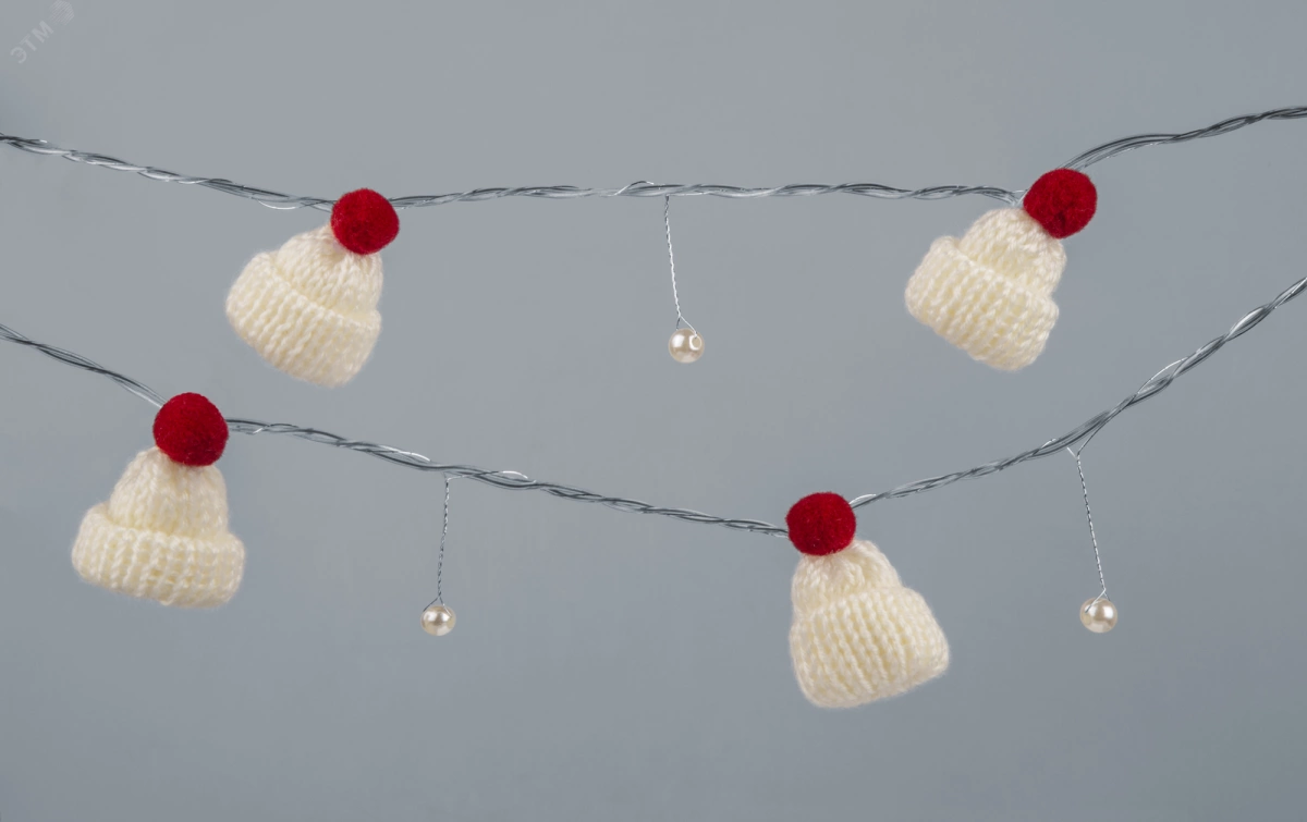 Гирлянда новогодняя светодиодная NGF-D045-02 рождественские шапочки WW