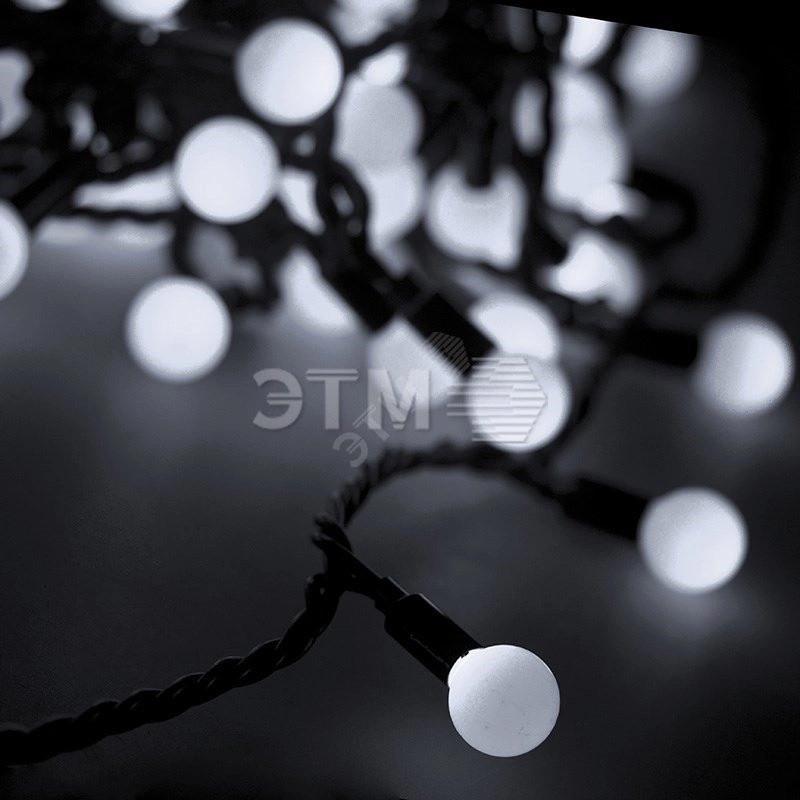 Гирлянда ''LED - шарики'' представляет собой электрический шнур, имеющий длину 10 или 20 м, на котором располагаются сверх яркие светодиодные лампы, изготовленные в виде шариков с диаметром 1,3-4,5см. Светодиоды по сравнению с миниатюрными лампами накаливания имеют целый ряд существенных преимуществ. Их отличает чистое и яркое свечение, огромный ресурс, прочность, незначительное потребление энергии, надежность. Гирлянда ''LED - шарики'' великолепно подходит для украшения витрин магазинов, помещений, больших интерьерных и уличных елок, превращая их в настоящие произведения искусства. Благодаря хорошей влагозащищенности гирлянду можно использовать как в помещении, так и на улице. Данная гирлянда имеет длину 10м. на которой равномерно расположены 80 шариков диаметром 23мм с цветом свечения белый.