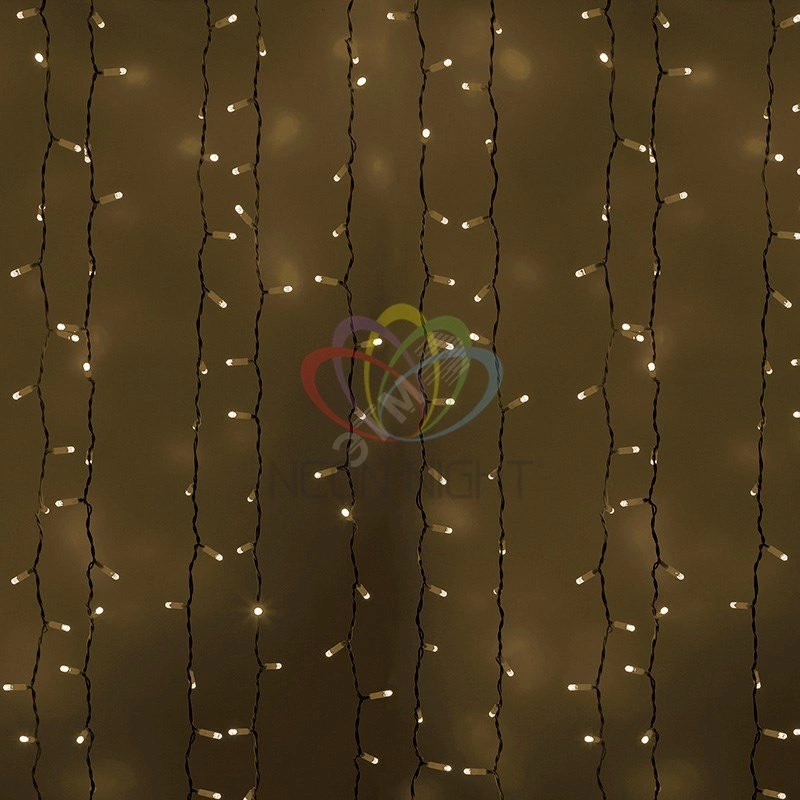 Гирлянда ''Светодиодный Дождь'' представляет собой гибкий горизонтальный шнур-шину (2м), к которому через определенные промежутки крепятся вертикальные нити (20 шт.) со светодиодными лампами, которые отличаются от ''Бахромы'' тем, что имеют одинаковую, достаточно значительную длину, часто превышающую протяженность шины. На концах каждой шины есть разъем и штепсель, которые предназначены для последовательного соединения нескольких световых дождей в большой занавес ПЛЕЙ-ЛАЙТ. Используя занавес, можно не только создавать красивые световые занавесы или оформлять различные плоскости, например, фасады домов, окна и т.д., но и украшать объемные объекты.