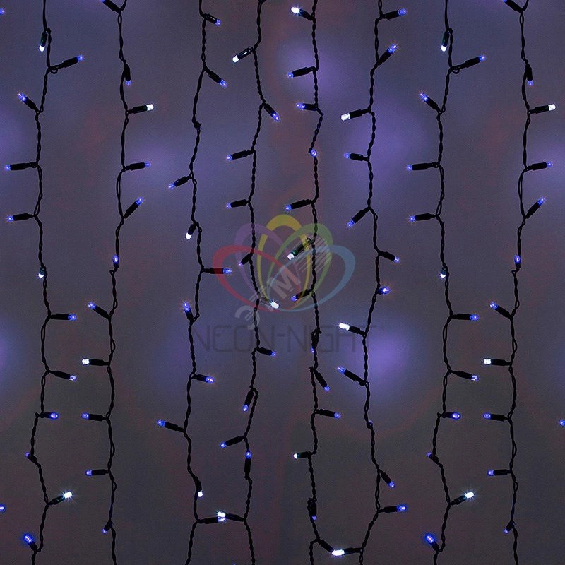 Гирлянда профессиональная Светодиодный Дождь 2х3м эффект мерцания черный провод 220В синий