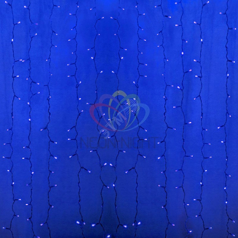 Гирлянда профессиональная Светодиодный Дождь 2х3м постоянное свечение прозрачный провод 220В синий