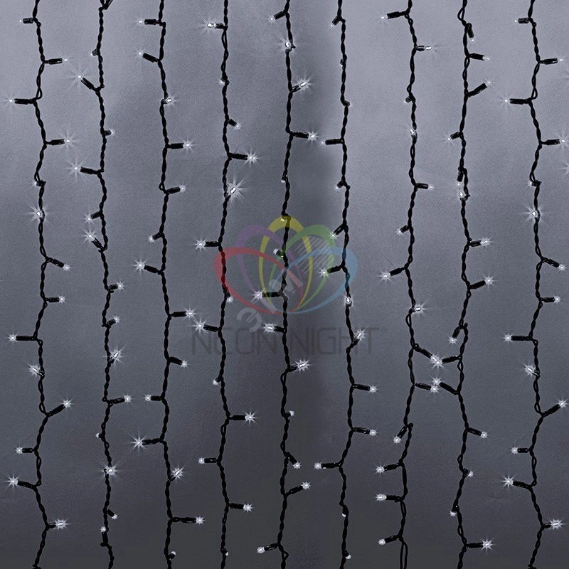 Гирлянда ''Светодиодный Дождь'' представляет собой гибкий горизонтальный шнур-шину (2м), к которому через определенные промежутки крепятся вертикальные нити (20 шт.) со светодиодными лампами, которые отличаются от ''Бахромы'' тем, что имеют одинаковую, достаточно значительную длину, часто превышающую протяженность шины. На концах каждой шины есть разъем и штепсель, которые предназначены для последовательного соединения нескольких световых дождей в большой занавес ПЛЕЙ-ЛАЙТ. Используя занавес, можно не только создавать красивые световые занавесы или оформлять различные плоскости, например, фасады домов, окна и т.д., но и украшать объемные объекты. Данная гирлянда имеет эффект водопада.