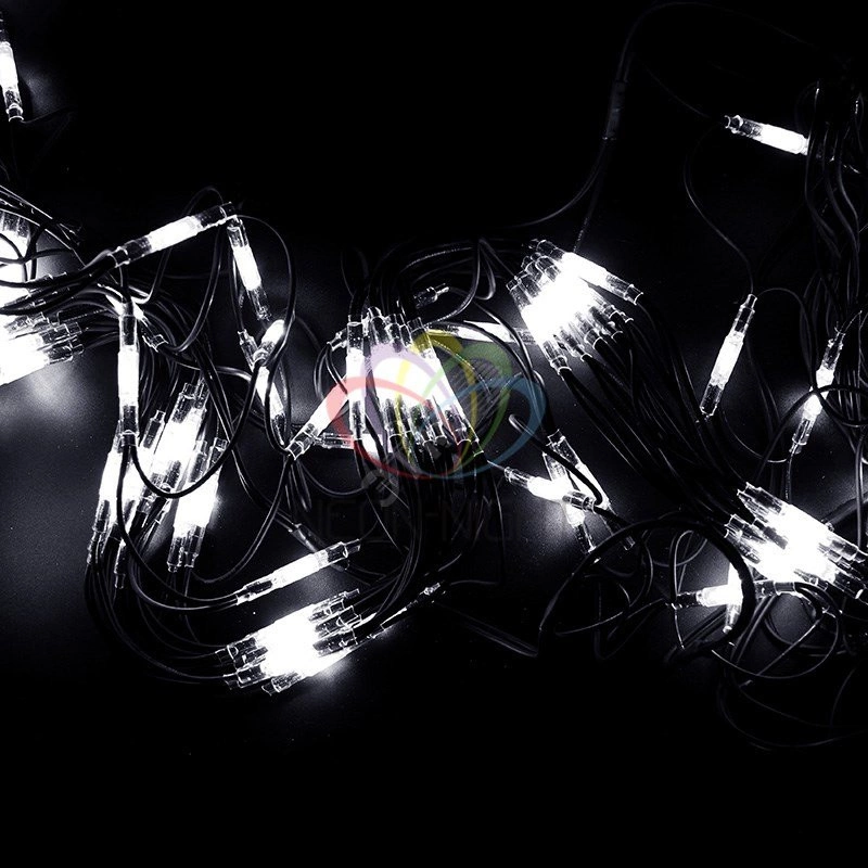 Гирлянда-сеть представляет из себя конструкцию в виде прямоугольника размером 2*3 метра, разбитого на равные ромбы, в углах которых находятся два диода белого цвета, соединённых и расположенных по направлению друг к другу. Гирлянда имеет степень влагозащиты IP67 и каучуковый провод черного цвета, что позволит вам быстро и выгодно решить вопрос с декоративным украшением любых объектов как внутри помещения, так и снаружи. В комплект входит установочный набор для подключения гирлянды к сети. Особенностью этого типа гирлянд является то, что их можно соединять между собой и/или к ней можно также подключить контроллеры арт. 217-201 или 217-202 которые позволят гирлянде работать в динамике.
