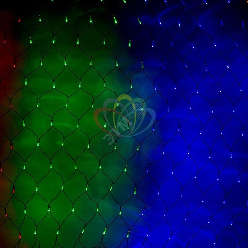 Гирлянда-сеть представляет из себя конструкцию в виде прямоугольника размером 1*1,5 метра, разбитого на равные ромбы, в углах которых находятся диоды красного, зеленого и синего цвета (RGB), причем диоды чередуются через один. Гирлянда имеет степень влагозащиты IP65 и ПВХ провод черного цвета, что позволит вам быстро и выгодно решить вопрос с декоративным украшением любых объектов как внутри помещения, так и снаружи. В комплекте идет контроллер с 8 режимами свечения, что позволяет гирлянде работать в динамике. Данная гирлянда используется для украшения фасадов и потолков зданий практически любой площади, отлично подходит для украшения небольших кустов, растяжки между направляющими в беседке или веранде, ей можно легко и быстро обмотать колонны или столбы, служит красивым декором окон зданий.