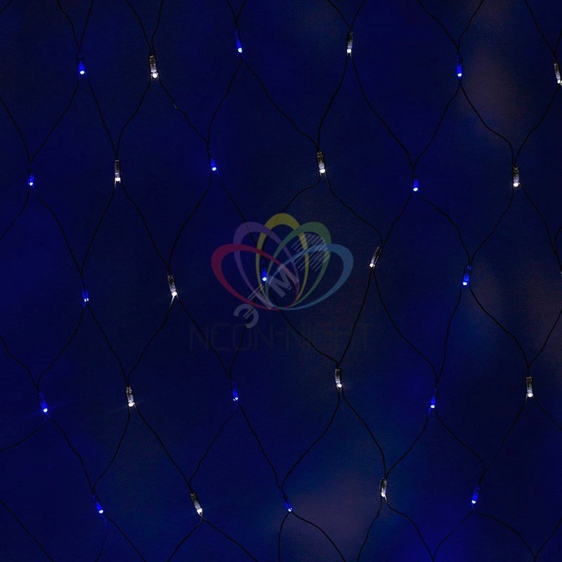 Гирлянда-сеть представляет из себя конструкцию в виде прямоугольника размером 2,5*2,5 метра, разбитого на равные ромбы, в углах которых находятся диоды белого и синего цвета, причем диоды чередуются по линии. Гирлянда имеет степень влагозащиты IP65 и ПВХ провод черного цвета, что позволит вам быстро и выгодно решить вопрос с декоративным украшением любых объектов как внутри помещения, так и снаружи. В комплекте идет контроллер с 8 режимами свечения, что позволяет гирлянде работать в динамике. Данная гирлянда используется для украшения фасадов и потолков зданий практически любой площади, отлично подходит для украшения небольших кустов, растяжки между направляющими в беседке или веранде, ей можно легко и быстро обмотать колонны или столбы, служит красивым декором окон зданий.