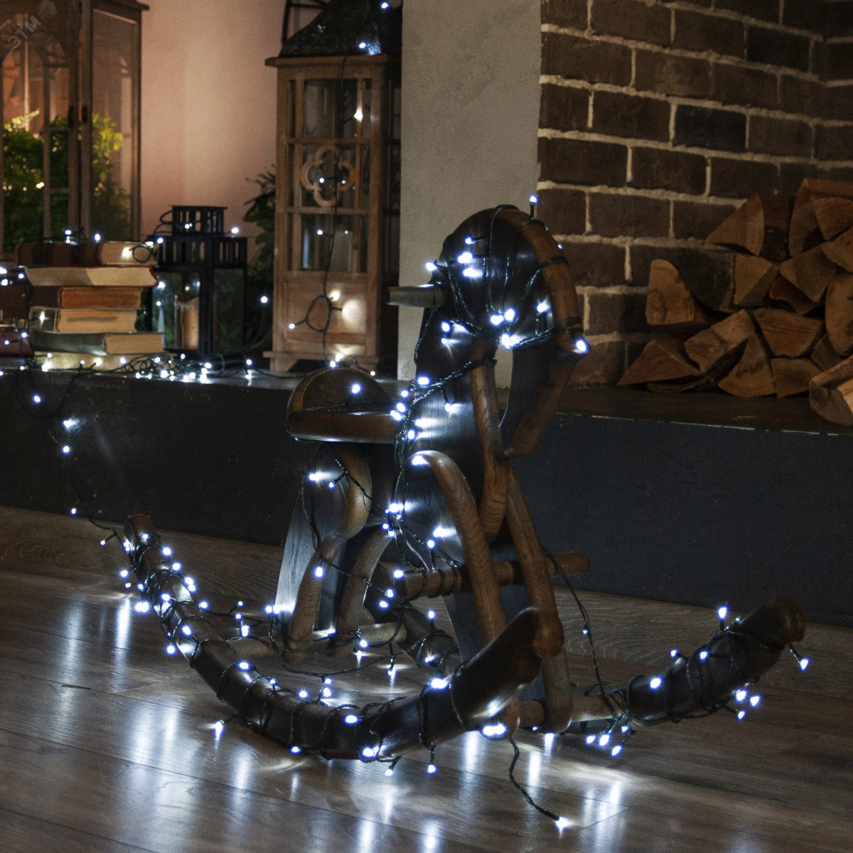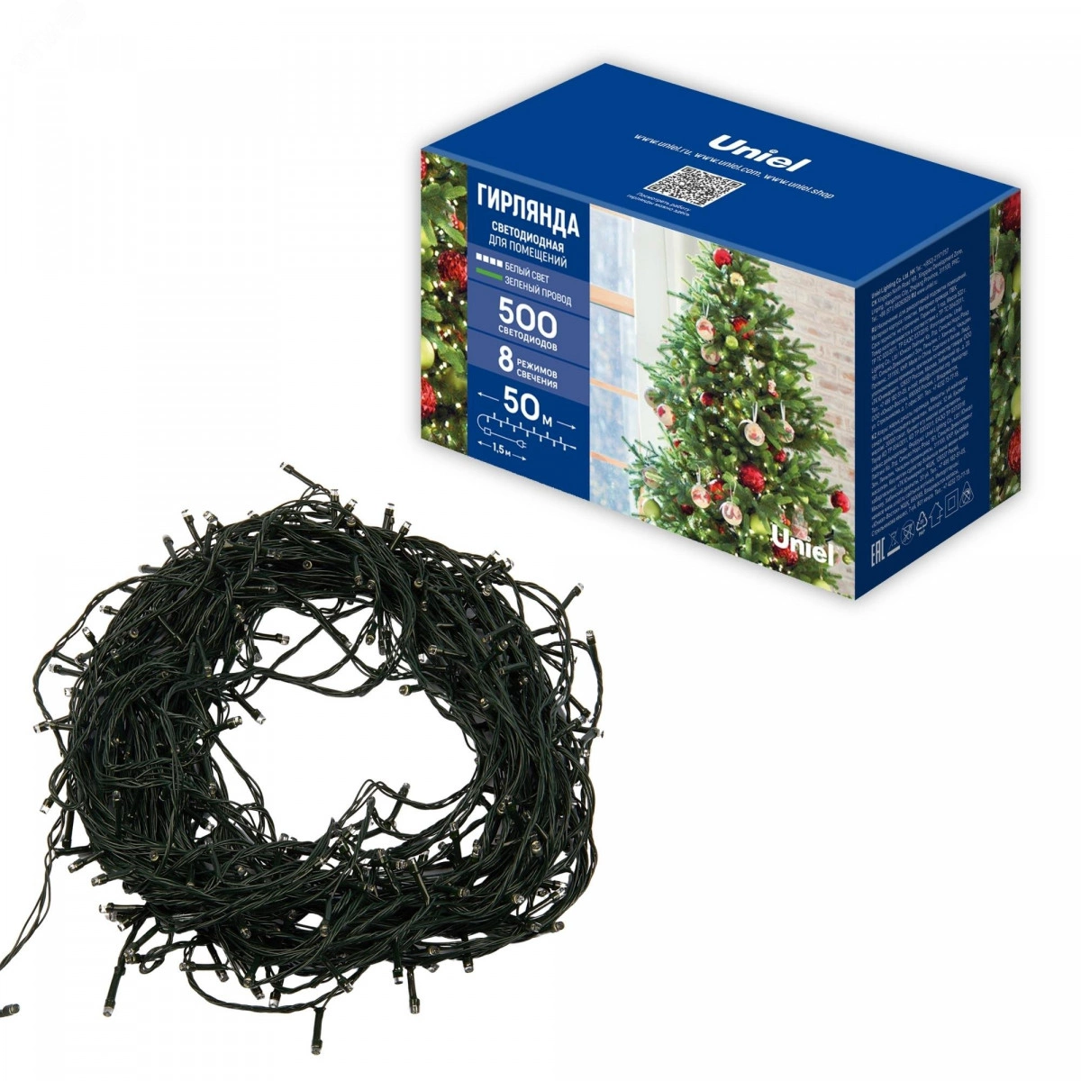 Светодиодная гирлянда ULD-S5000-500/DGA WHITE IP20 предназначена для декоративной подсветки и праздничного оформления в помещении. Свет - белый. Цветовая температура 4000 К. Гирлянда изготовлена из пластика, цвет провода - зеленый. Гирлянда имеет 8 режимов свечения - волнообразный, последовательный, перетекающий, бегущая вспышка, затухающий, мерцающий, постоянный и комбнированный (воспроизводит все режимы по очереди). В комплект входит удобный контроллер для переключения режимов свечения.Температурный режим работы от -20 до +35 С?, степень пылевлагозащиты IP 20. Длина гирлянды составляет 50 м, общее количество светодиодов - 500 шт. Благодаря использованию светодиодов общей мощностью 25 Вт, её отличительной особенностью является превосходная яркость и низкое энергопотребление. В комплекте сетевой кабель длиной 1,5 метра. Светодиодная гирлянда как элемент декора украсит в любое время года коттеджи, магазины, офисы, спортивные центры, а также привлечет внимание к витринам магазинов.