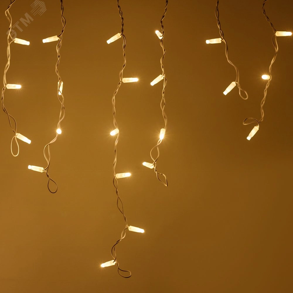 Светодиодная гирлянда БАХРОМА серии PRO. Размер 4000x600 (длина 4000 мм, высота 600 мм). Цвет светодиодов ТЕПЛЫЙ БЕЛЫЙ (3000 К), эффект мерцания 180-200 вспышек в минуту, цвет мерцающих светодиодов БЕЛЫЙ (6000 К). Провод из белого каучука, диаметр 3.3 мм, 32 ниспадающие нити длиной от 200 до 600 мм. 128 светодиодов размером 7 мм, прозрачный вогнутый колпачок. Напряжение питания 230 В, потребляемая мощность 8 Вт, степень пылевлагозащиты IP65. Для эксплуатации необходимо приобрести аксессуар для подключения.
