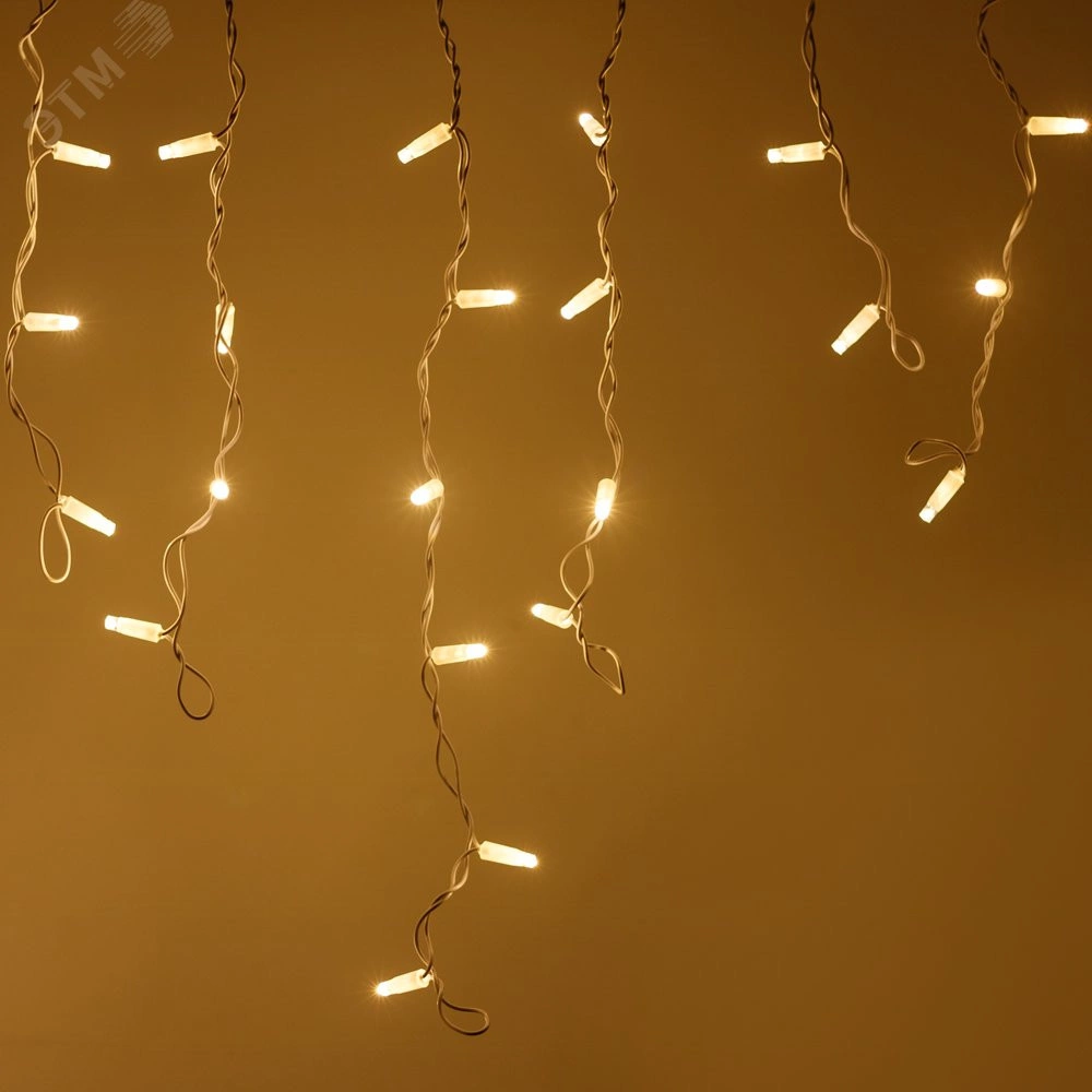 Светодиодная гирлянда БАХРОМА серии PRO. Размер 5600x900 (длина 4600 мм, высота 900 мм). Цвет светодиодов ТЕПЛЫЙ БЕЛЫЙ (3000 К), эффект мерцания 180-200 вспышек в минуту, цвет мерцающих светодиодов БЕЛЫЙ (6000 К). Провод из белого каучука, диаметр 3.3 мм, 48 ниспадающих нитей длиной от 200 до 900 мм. 240 светодиодов размером 7 мм, прозрачный вогнутый колпачок. Напряжение питания 230 В, потребляемая мощность 15 Вт, степень пылевлагозащиты IP65. Для эксплуатации необходимо приобрести аксессуар для подключения.