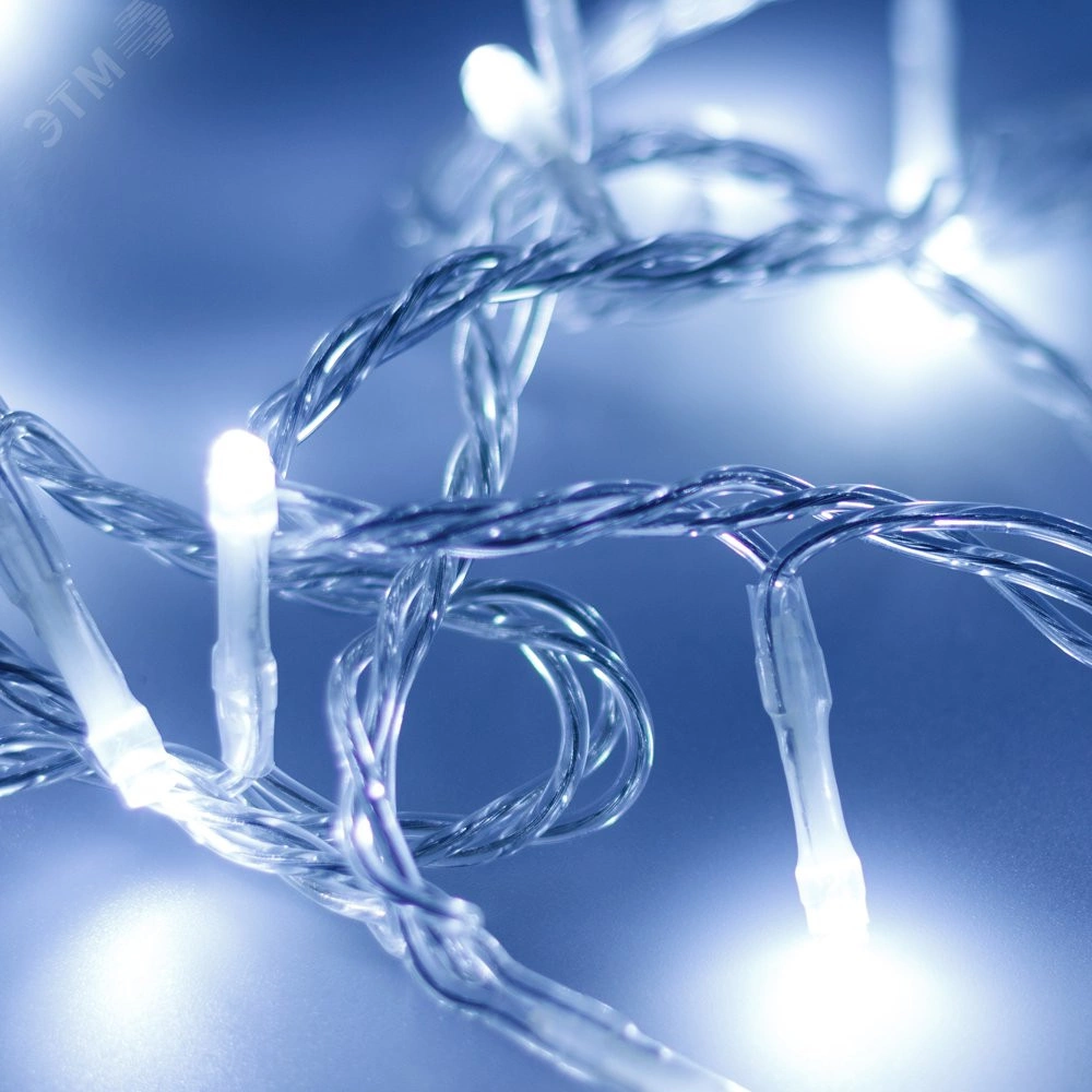 Светодиодная гирлянда НИТЬ серии HOME. Размер 5000 мм. Цвет светодиодов БЕЛЫЙ (6000 К), постоянное свечение. Провод из прозрачного ПВХ, диаметр 2 мм. 50 светодиодов размером 5 мм, прозрачный вогнутый колпачок. Напряжение питания 230 В, потребляемая мощность 3.5 Вт, степень пылевлагозащиты IP20. Аксессуар для подключения в комплекте.