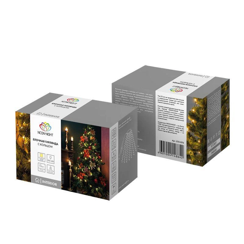 Полное описание: Гирлянда светодиодная елочная с кольцом 7 нитей х1.5м 105LED тепл. бел. 5.5Вт IP20 не соединяется Neon-Night 235-076