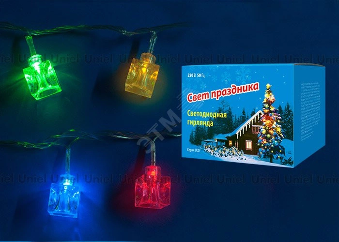 Декоративное светодиодное освещение торговой марки Uniel предназначено для оформления помещений и наружного дизайна. Это простой и оригинальный способ создать праздничную атмосферу не только дома и на даче, но и в торговом центре или кафе. Гирлянда светодиодная Кубики с контроллером ULD-S0280-020/DTA MULTI IP20 CUBES обладает 20 светодиодами, имеет длину 2.8 м. Цвет свечения - мультиколор. Степень защиты IP20.