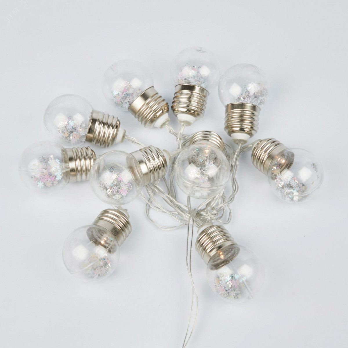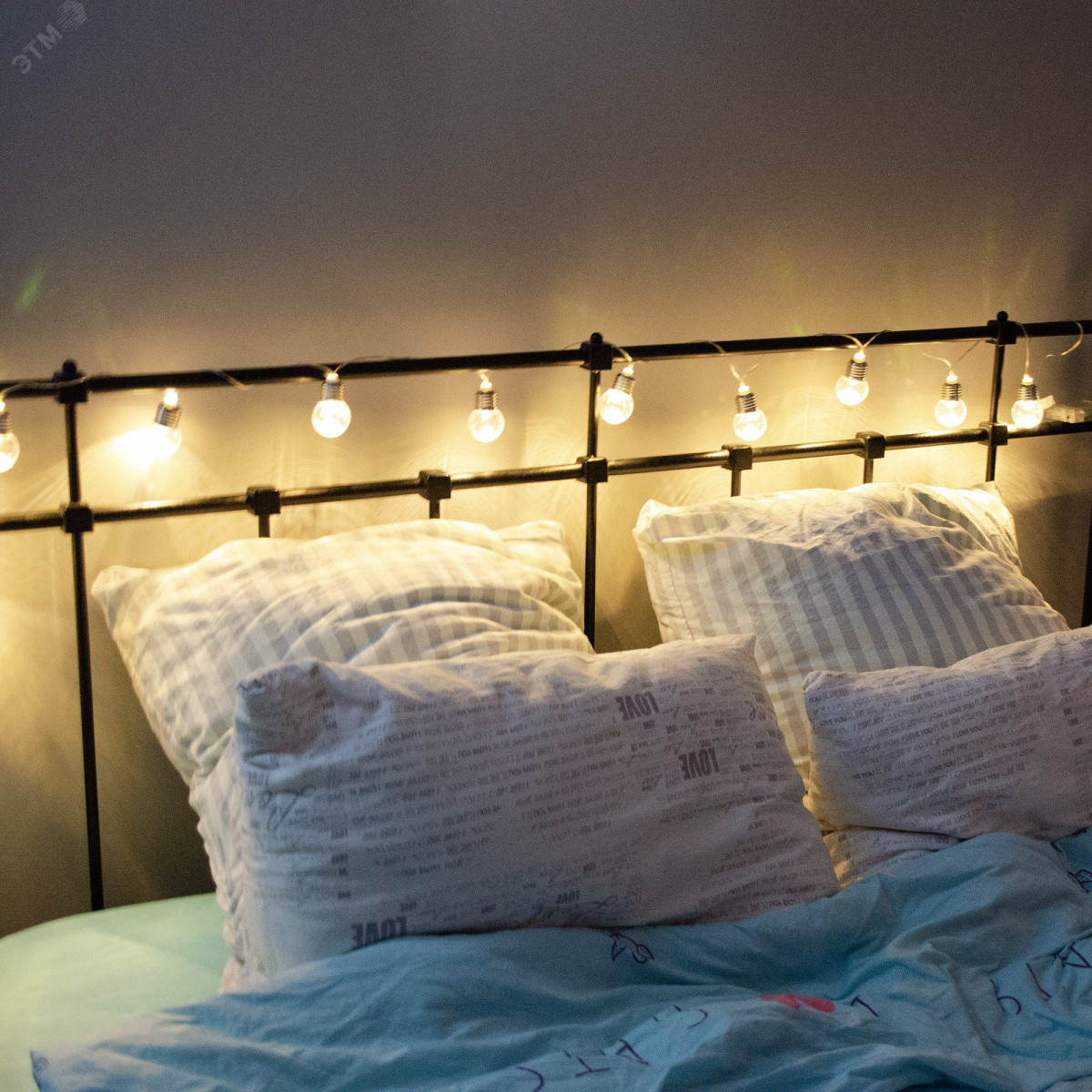 Гирлянда светодиодная лампочки ретро на батарейках. Гирлянда с теплым белым свечением, незаменима для декоративной подсветки и украшения интерьера, легко монтируется. Светодиодная гирлянда длиной 1,8 метра, имеет 10 светодиодов, диаметром 4 сантиметров, предназначена для использования в помещениях. Отличительной особенностью гирлянды является превосходная яркость и низкое энергопотребление. Сетевой кабель длиной 0,3 метра. Цвет провода - прозрачный. Поставляется в картонной упаковке. Срок службы составляет 30000 часов. Гарантия производителя 12 месяцев. Элемент питания три батарейки типа АА, в комплект не входят.