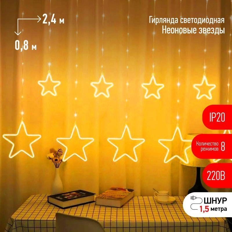 Гирлянда светодиодная "Неоновые звезды" ЕGNIG-ST занавес 8 реж. 2.4х0.8м тепл. свет IP20 Эра Б0051877