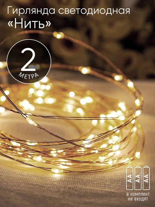 Гирлянда светодиодная "Нить" 2м 20LED АА IP20 тепл. свет ЭРА Б0041891