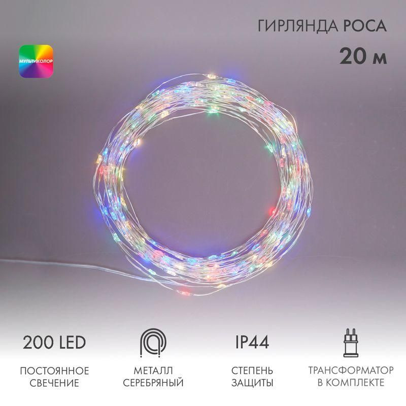 Полное описание: Гирлянда светодиодная "Роса" 20м 200LED мультиколор 3.6Вт IP44 трансф. в компл. Neon-Night 303-209