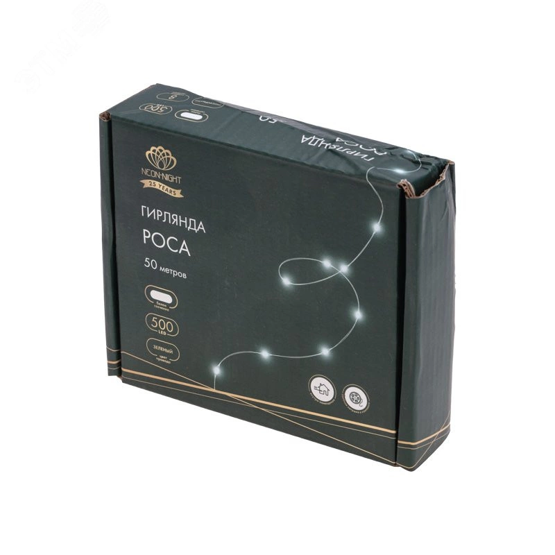 Гирлянда Роса длиной 50 метров представляет собой тонкий провод зеленого цвета, на котором горят и мерцают маленькие светодиоды, напоминающие капли росы. Благодаря своей универсальности гирлянда применяется для украшения любых предметом интерьера и используется для создания романтических образов на фотосессиях, свадьбах, днях рождениях и других праздниках. Отлично подходит для украшения новогодней елки. Роса излучает белое свечение, которое создает уютную и приятную атмосферу в любом помещении. При работе гирлянда не нагревается, что делает ее абсолютно безопасной. Гирлянда имеет 8 режимов свечения. Оснащена трансформатором и контроллером, который позволяет выбирать необходимый режим работы.