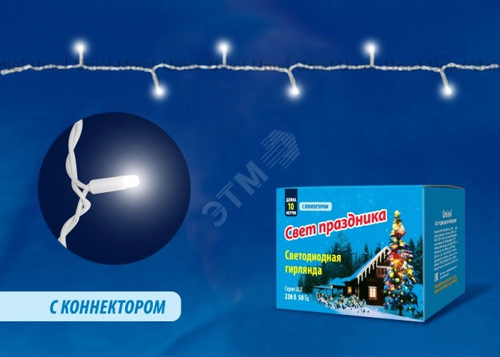 Гирлянда светодиодная с эффектом мерцания 10м Соединяемая 120 светодиодов Белый свет Провод белый ULD-S1000-120/TWK WHITE IP67