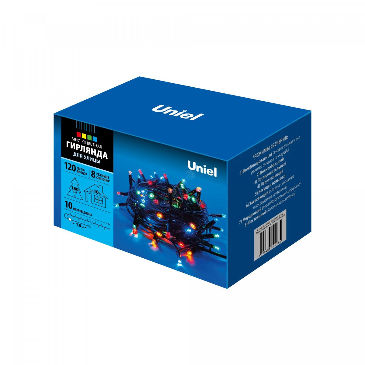 Гирлянда светодиодная с контроллером. Гирлянда с разноцветным свечением. Предназначена для украшения строений и интерьеров на улице. Светодиодная гирлянда длиной 10 метров имеет 12х1,5 метра. Цвет провода - черный. Поставляется в картонной упаковке. Срок службы составляет 50000 часов. Гарантия производителя 12 месяцев.