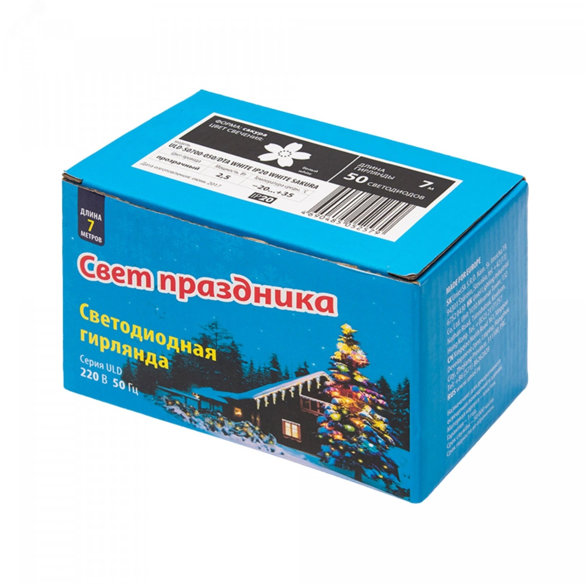 Гирлянда светодиодная с контроллером Сакура белая 50 светодиодов 7 м белая,IP20,провод прозрачный ULD-S0700-050/DTA WHITE IP20 WHITE SAKURA