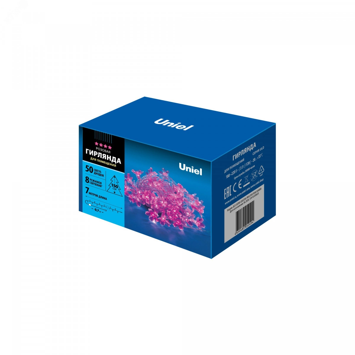 Декоративное светодиодное освещение торговой марки Uniel предназначено для оформления помещений и наружного дизайна. Это простой и оригинальный способ создать праздничную атмосферу не только дома и на даче, но и в торговом центре или кафе. Гирлянда светодиодная с контроллером Сакура розовая ULD-S0700-050/DTA PINK IP20 PINK SAKURA обладает 50 светодиодами, имеет длину 7 м, провод прозрачный, 8 режимов свечения. Цвет свечения - розовый . Степень защиты IP20.