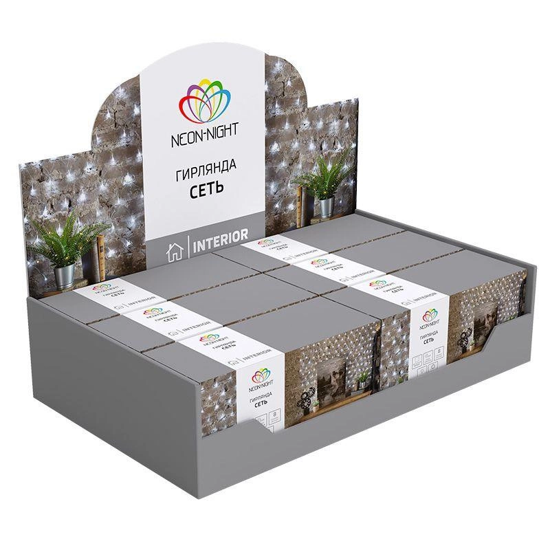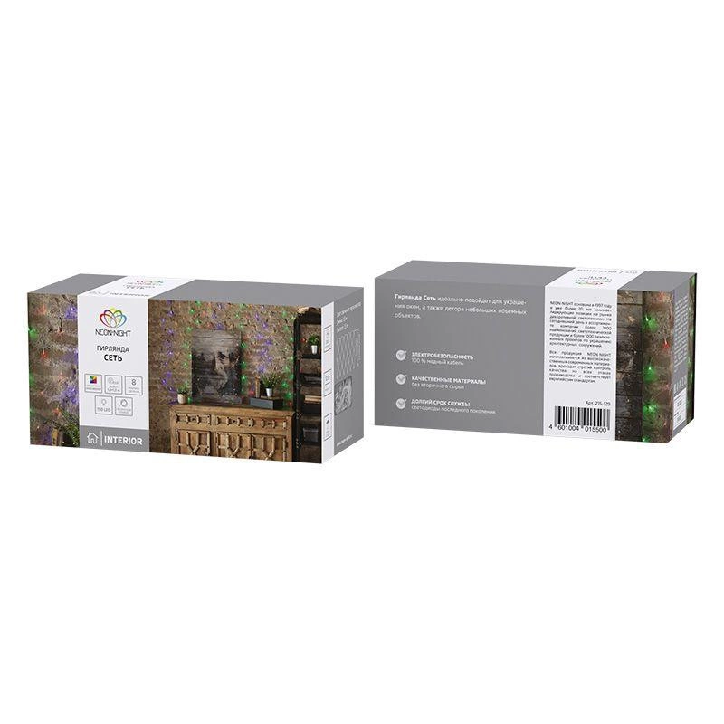 Полное описание: Гирлянда светодиодная "Сеть" 1.5х1.5м 150LED мультиколор 12Вт 220В IP20 с контроллером 8 режимов провод прозр. ПВХ Neon-Night 215-129