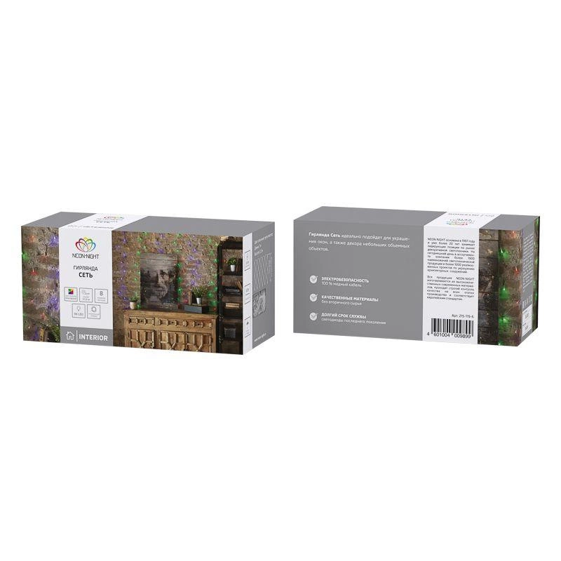 Полное описание: Гирлянда светодиодная "Сеть" 1х1.5м 96LED мультиколор 12Вт 230В IP20 с контроллером 8 режимов провод прозр. ПВХ Neon-Night 215-119-6