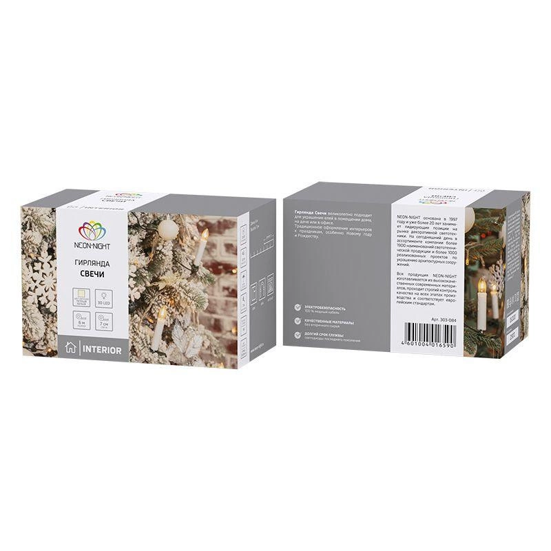 Полное описание: Гирлянда светодиодная "Свечи" 6м 30LED тепл. бел. 3Вт 220-240В IP20 провод ПВХ темн. зел. Neon-Night 303-084