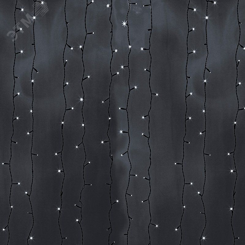 Гирлянда ''Светодиодный Дождь'' представляет собой гибкий горизонтальный шнур-шину (2м), к которому через определенные промежутки крепятся вертикальные нити (20 шт.) со светодиодными лампами, которые отличаются от ''Бахромы'' тем, что имеют одинаковую, достаточно значительную длину, часто превышающую протяженность шины. На концах каждой шины есть разъем и штепсель, которые предназначены для последовательного соединения нескольких световых дождей в большой занавес ПЛЕЙ-ЛАЙТ. Используя занавес, можно не только создавать красивые световые занавесы или оформлять различные плоскости, например, фасады домов, окна и т.д., но и украшать объемные объекты. Данная гирлянда имеет эффект водопада.