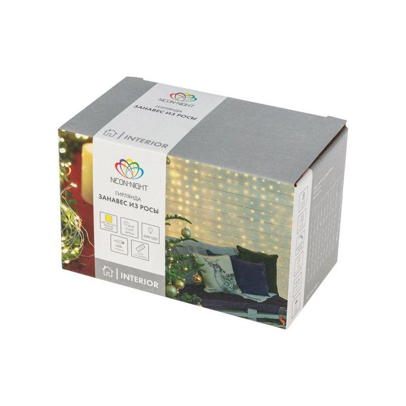 Полное описание: Гирлянда "Светодиодный дождь" из росы 6х3м USB+пульт управления теплый бел. Neon-Night 315-996