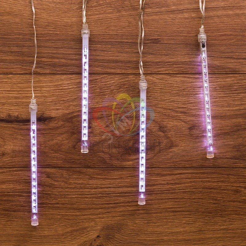 Гирлянда ''Тающие сосульки'' представляет собой комплект из 4 трубок длиной 20 см, выполненных из прозрачного ПВХ, внутри каждого элемента располагается двухсторонняя плата со светодиодами белого свечения. Встроенный микрочип обеспечивает эффект стекающей капли, создаваемый светодинамикой. Гирлянда работает от сети 230 Вольт, в комплект входит трансформатор. Гирлянда имеет степень защиты IP20 и предназначена для использования в интерьере и сухих помещениях с умеренной влажностью.