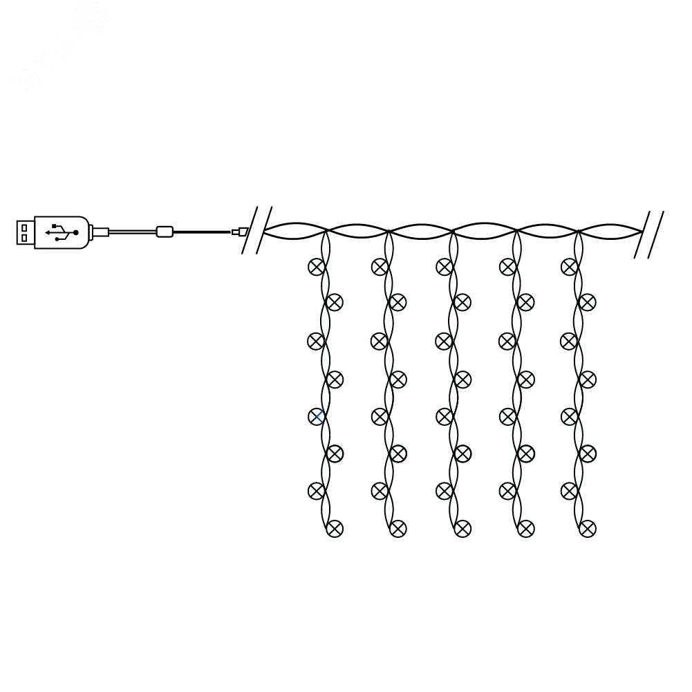 Гирлянда занавес LED 5000К 2х2м USB+пульт ДУ