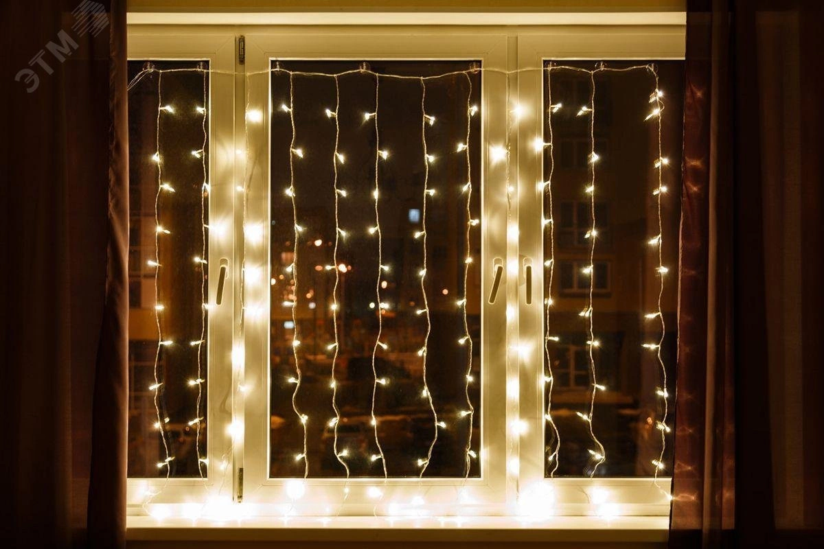 Гирлянды этого типа представляют собой прозрачный провод с нитями, на которых расположены светодиоды. Световой занавес выглядит единым полотном со светодиодами и идеально подходит для украшения окон, витрин, дверных проемов, как внутри помещения, так и на улице. Пользуется высокой популярностью для оформления офисов, ресторанов и мест продаж.