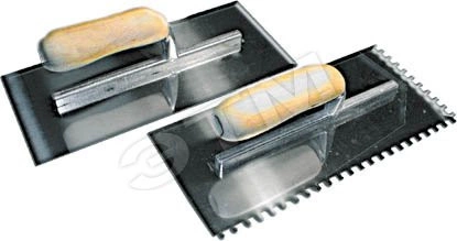 Для равномерного нанесения штукатурного раствора на поверхность. Материал - нержавеющая сталь, деревянная ручка.