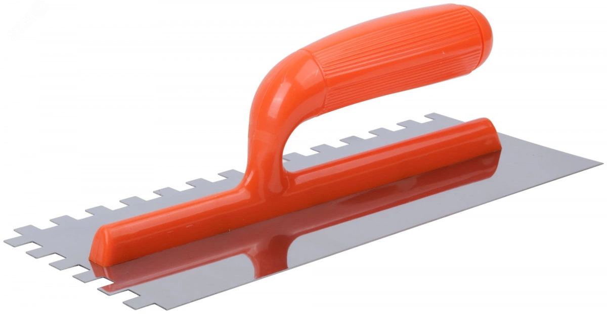 Гладилка нержавеющая с пластиковой ручкой, 280х130 мм зубчатая 10х10 мм