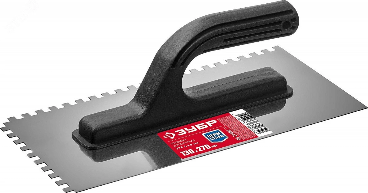 Гладилка штукатурная 130х270 мм 6х6 мм зубчатая нержавеющая с пластиковой ручкой