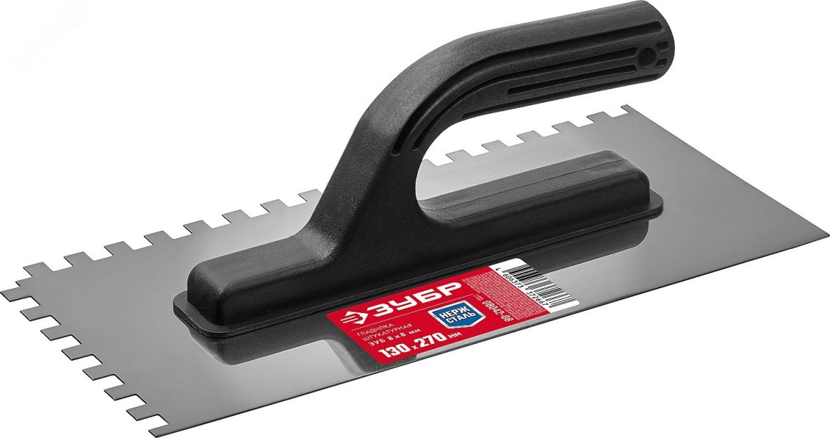 Гладилка штукатурная 130х270 мм 8х8 мм зубчатая нержавеющая с пластиковой ручкой