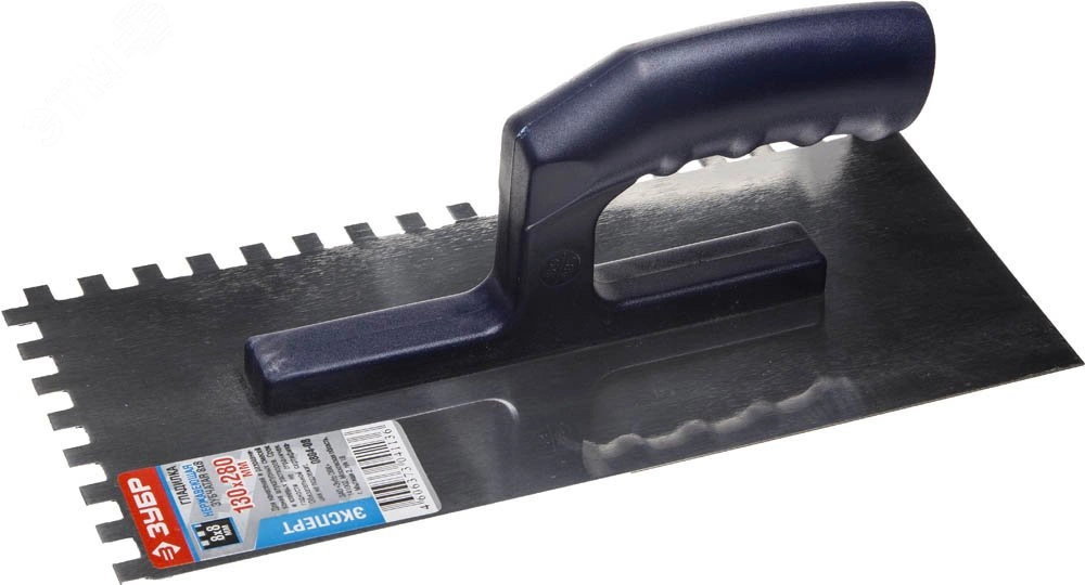 Гладилка стальная с пластиковой ручкой, 280х130 мм зубчатая, зуб 8х8 мм