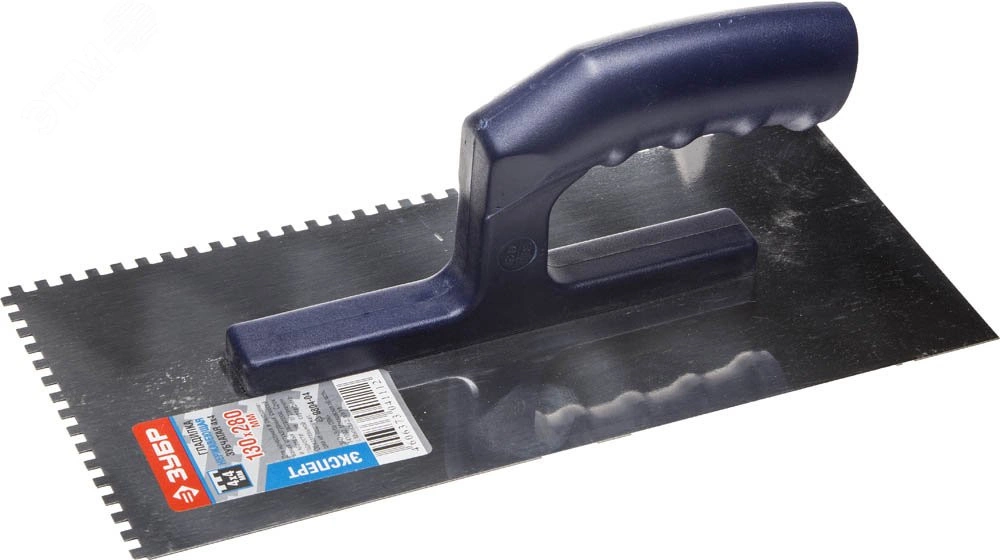 Гладилка стальная с пластиковой ручкой, 280х130 мм зубчатая, зуб 8х8 мм