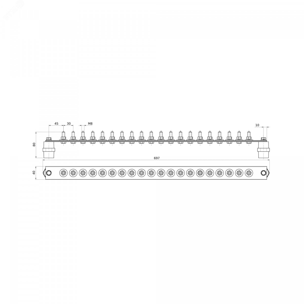 Главная заземляющая шина (ГЗШ) объединяет нулевые защитные и нулевые рабочие проводники питающей линии, выводы контура заземления, заземляющие проводники, проводники системы уравнивания потенциалов. Место установки ГЗШ должно быть защищено от случайного прикосновения. Материал шины - медь, в комплект также включены метизы (болты, гайки, шайбы) из нержавеющей стали. Количество подключений проводника - 20.