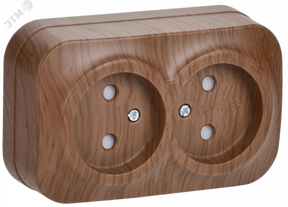 GLORY Розетка двухместная наружная без заземления с защитной шторкой дуб