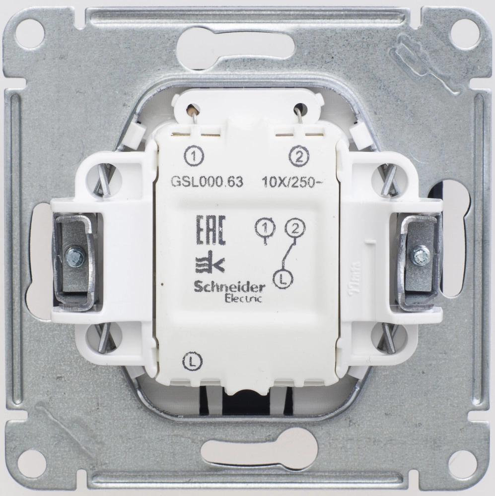 Механизм Schneider Electric Glossa (цвет шоколад) переключателя 1-клавишного с подсветкой подходит для сетей 250 В, на ток 10 А. Благодаря современной светодиодной подсветке зеленого цвета изделие легко найти в темноте. Переключатель позволяют управлять одним источником света с двух точек. Выполнен из материала PС+ASA, стойкого к УФ-излучению и появлению царапин. Эргономичные клеммы расположены в два ряда: сверху и снизу.