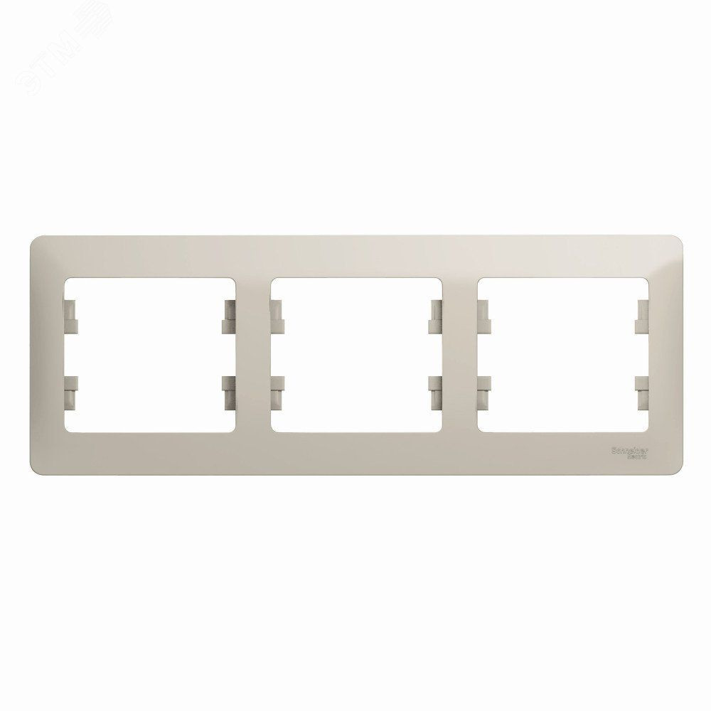 Рамка Systeme Electric (ранее Schneider Electric) серии Glossa (цвет молочный) трёхместная. Устанавливается в горизонтальном положении. Выполнена из материала PС+ASA, стойкого к УФ-излучению и появлению царапин. Позволяет гармонично вписать электроустановочное изделие в интерьер помещения.