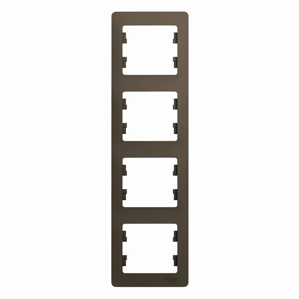 Рамка Systeme Electric (ранее Schneider Electric) серии Glossa (цвет шоколад) четырёхместная. Устанавливается в вертикальном положении. Выполнена из материала PС+ASA, стойкого к УФ-излучению и появлению царапин. Позволяет гармонично вписать электроустановочное изделие в интерьер помещения.