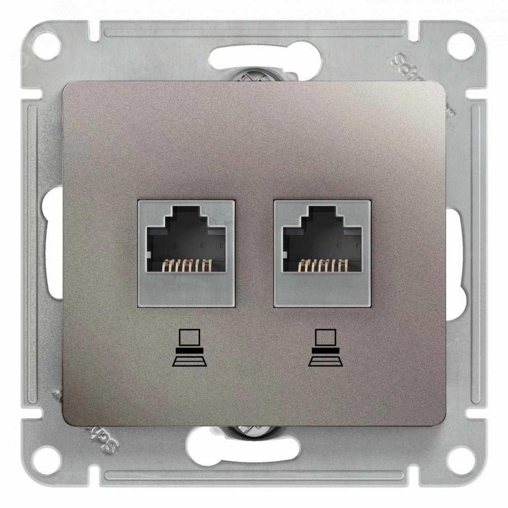 Механизм Schneider Electric Glossa (цвет платина) двойной розетки компьютерной с разъёмом RJ45 категория 5е предназначен для удобного и быстрого подключения вашего компьютера к компьютерной сети. Выполнен из материала PС+ASA, стойкого к УФ-излучению и появлению царапин.
