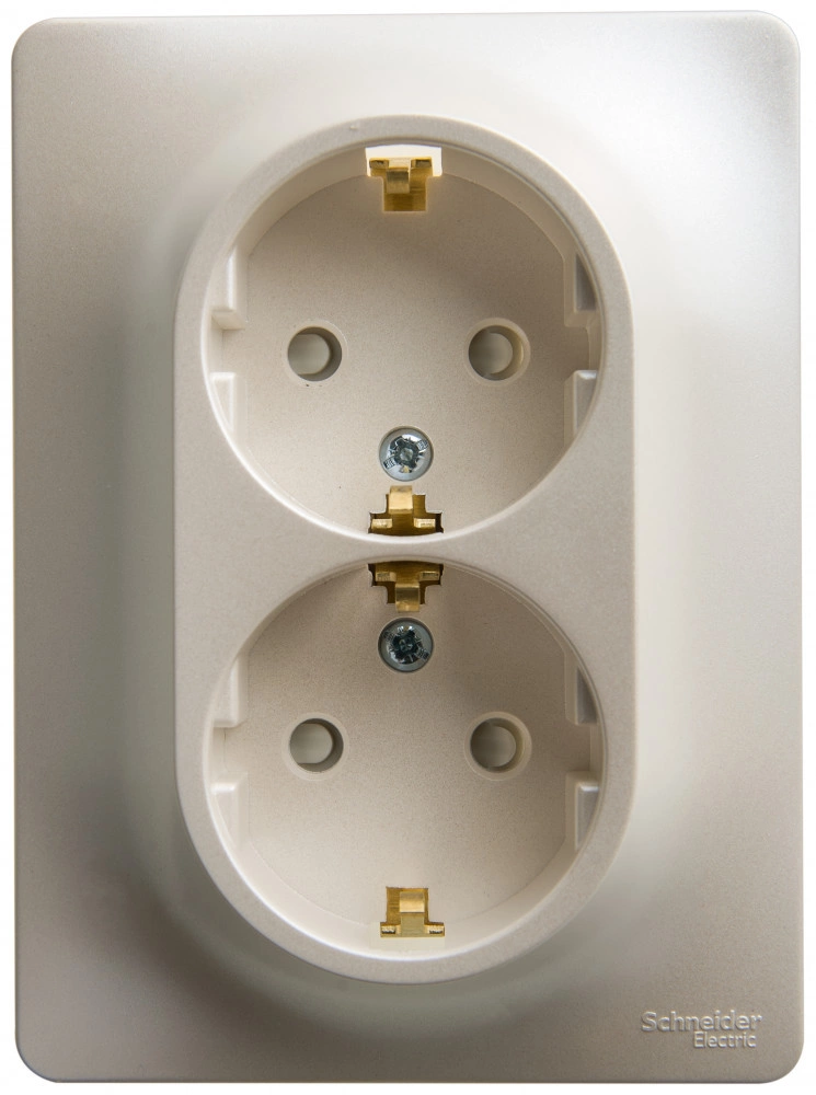 Розетка двойная Systeme Electric (ранее Schneider Electric) серии Glossa (в сборе, цвет перламутр) с заземлением и шторками подходит для сетей 250 В, на ток 16 А. Заземляющий контакт обеспечивает дополнительную защиту от удара электрическим током. При наличии заземления электрический потенциал уходит в землю, защищая человека. Выполнен из материала PС+ASA, стойкого к УФ-излучению и появлению царапин. Двойная розетка позволяет подключить два устройства в одном месте.