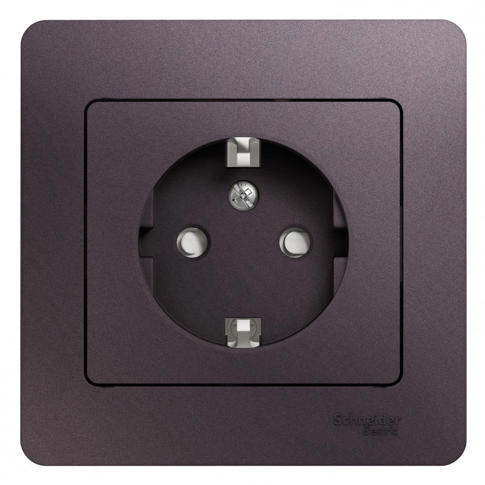 Розетка Schneider Electric Glossa (в сборе, цвет сиреневый туман) одинарная с заземлением и без шторок подходит для сетей 250 В, на ток 16 А. Заземляющий контакт обеспечивает дополнительную защиту от удара электрическим током. При наличии заземления электрический потенциал уходит в землю, защищая человека. Выполнен из материала PС+ASA, стойкого к УФ-излучению и появлению царапин. Эргономичные клеммы розеток расположены в один ряд.