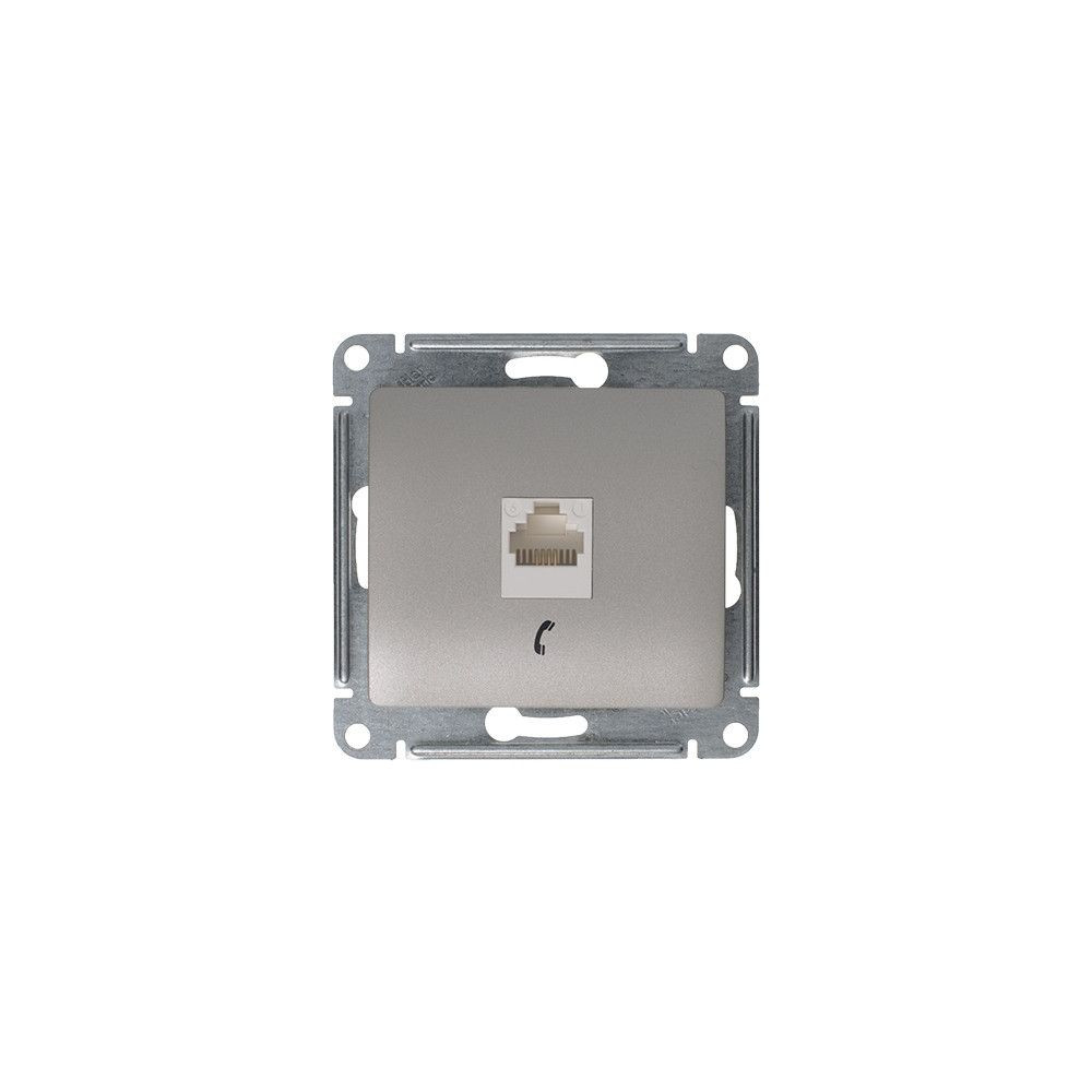 Механизм Systeme Electric (ранее Schneider Electric) серии Glossa (цвет платина) розетки телефонной с разъёмом RJ11 предназначен для удобного и быстрого подключения вашего телефона, модема или факса к телефонной сети. Выполнен из материала PС+ASA, стойкого к УФ-излучению и появлению царапин.