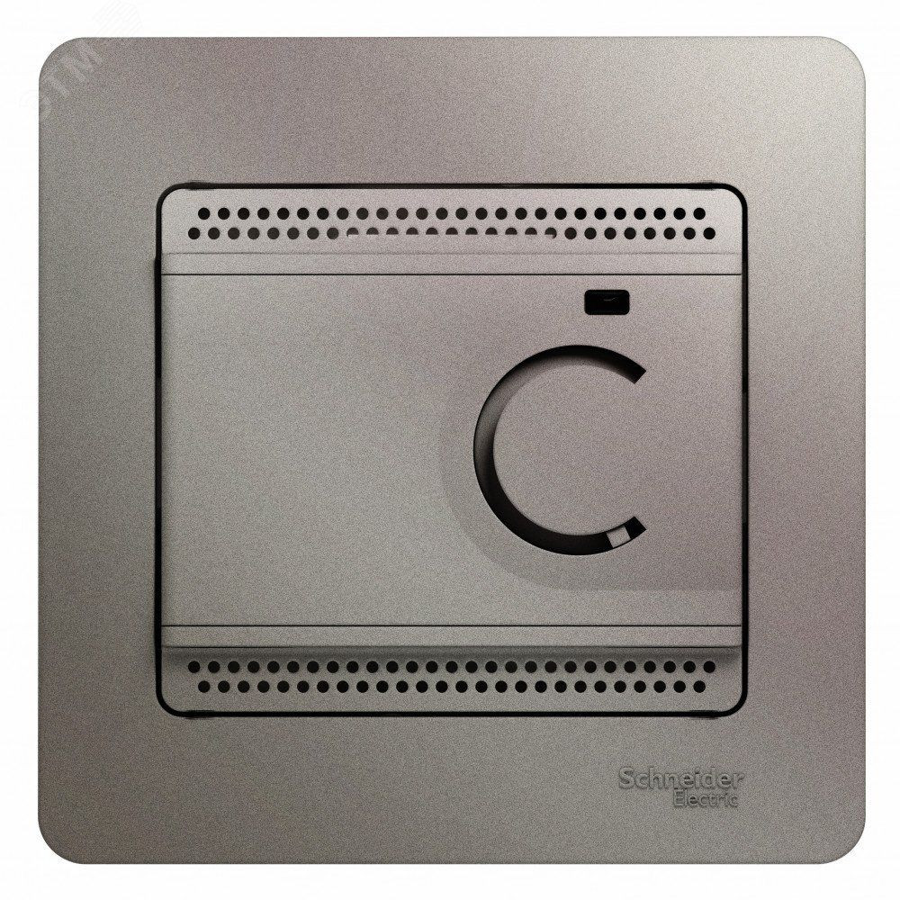 Термостат Schneider Electric Glossa (в сборе, цвет платина) электронный для тёплого пола с датчиком на ток до 10 А. Диапазон температур: от +5 до +50 °C. Термостат контролирует температуру теплого пола путем регулировки температуры нагревательных кабелей, вмонтированных в пол. Термостат включается с помощью выключателя, расположенного на передней панели. Выполнен из материала PС+ASA, стойкого к УФ-излучению и появлению царапин.