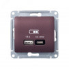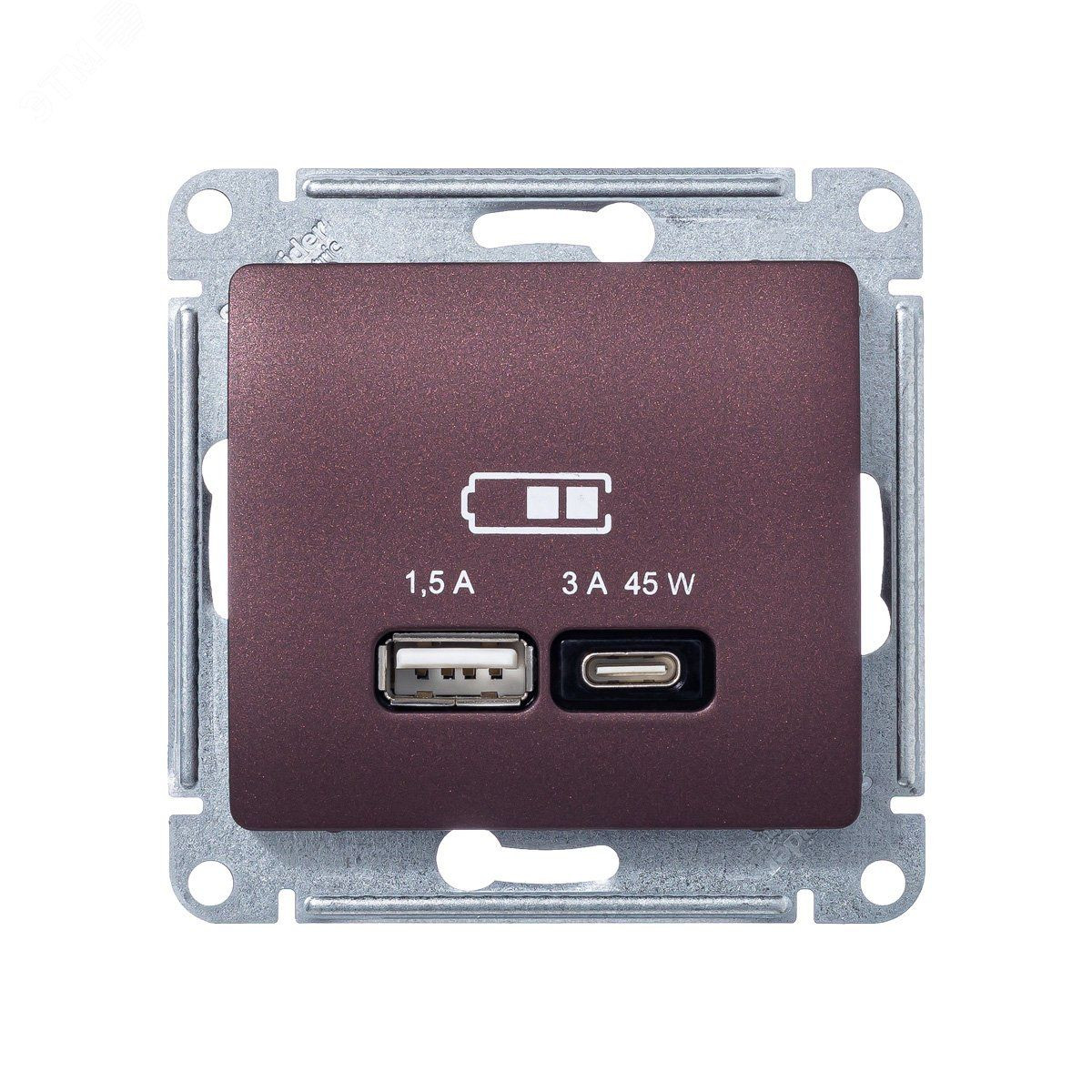 Розетка Systeme Electric серии Glossa (цвет баклажановый) двойная USB с разъемами типа A плюс C высокоскоростная. Самая современная USB-зарядка с двумя разъемами позволяет заряжать как стандартные мобильные устройства через разъем типа А, так и новейшие устройства с разъемом типа С. Позволяет заряжать смартфоны последнего поколения, которые поддерживают функцию быстрой зарядки. Мощность, тип-A – 7.5 Вт, тип-С - 45Вт. Поддерживает современные протоколы быстрой зарядки QC, PD, последних версий. Лицевые детали из качественного ABS-пластика, устойчивого к царапинам и УФ-излучению.
