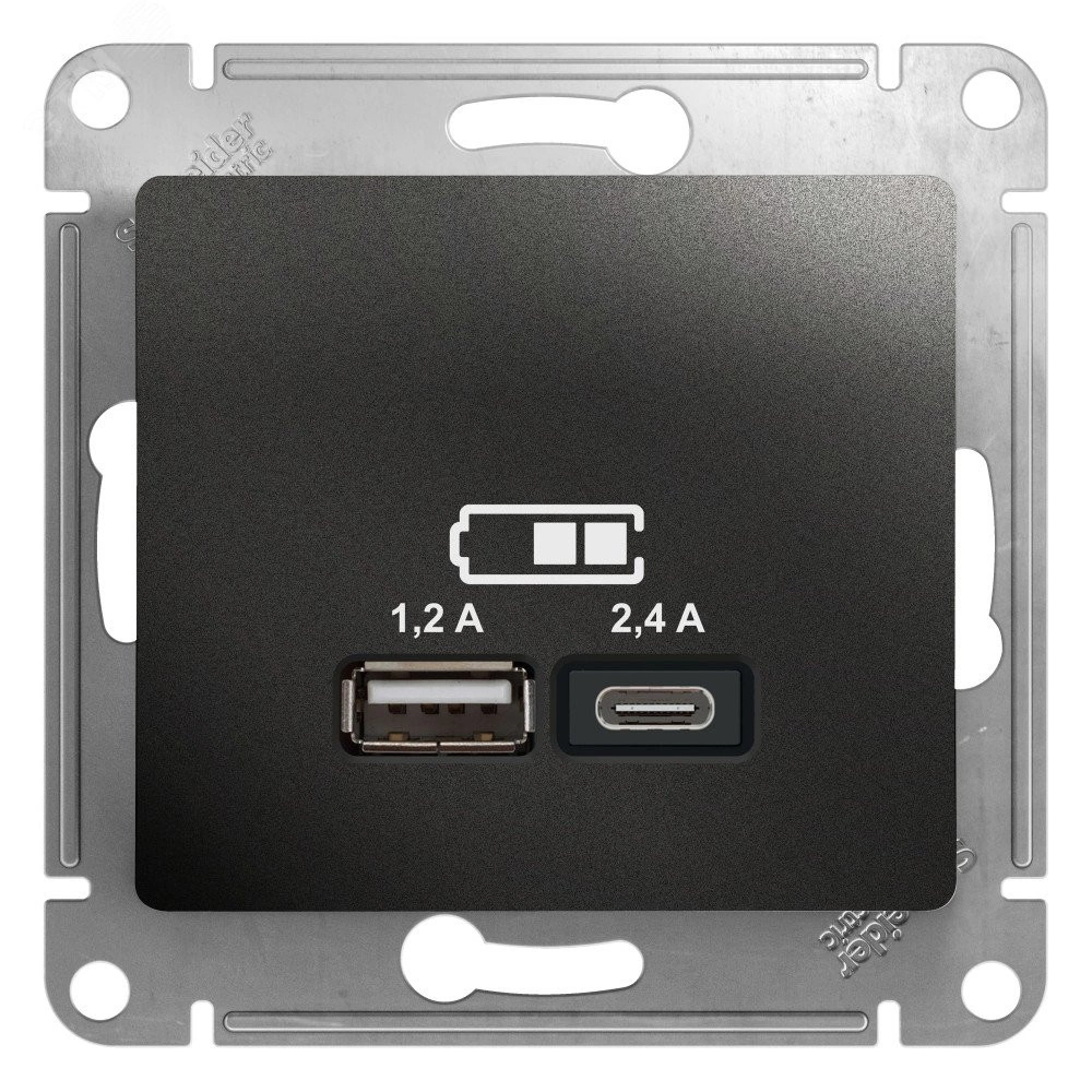 Розетка Schneider Electric Glossa (цвет антрацит) двойная USB с разъемами типа A+C. Выполнена из материала PС+ASA, стойкого к УФ-излучению и появлению царапин. Самая современная USB-зарядка с двумя разъемами позволяет заряжать как стандартные мобильные устройства через разъем типа А, так и новейшие устройства, в том числе ноутбуки, с разъемом типа С.